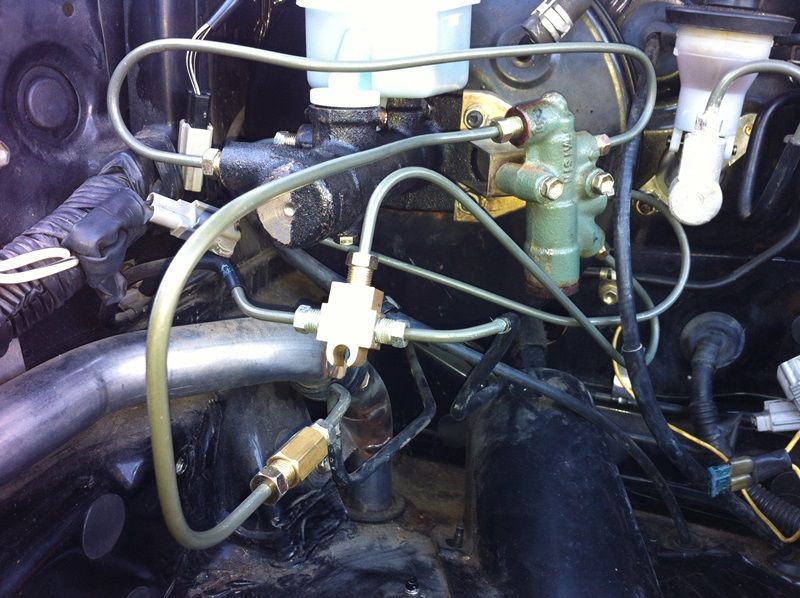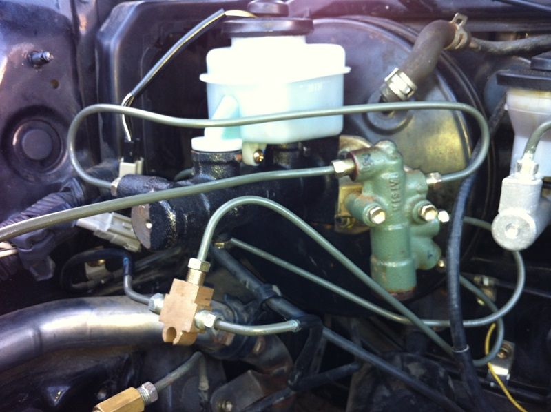 I recently upgraded my braking system to the late Gen3 brakes and discs, braided lines, non-ABS late model booster and brand new non-ABS 1” hilux 4 runner master cylinder. The brakes were formerly ABS and I have retained the ABS bias valve. Braking is fine in everyday driving but at the track I have this issue under heavy braking where the pedal is very hard with little braking power initially, followed by a normal feel in pedal travel in the pedal and heavy braking power. In this situation the front tyres lock up easily. During installation the whole system was flushed and new fluid used and the system bled well. I have since checked the brake calipers and they seem to operate and slide as they should. Do any brake experts have any opinions on what the problem might be? I think I might have an issue with the circuits/bias valve. A few things to note: - I have retained the ABS bias valve. This has 4 ports, 2 in and 2 out. 1 of the outs splits into two for the front brakes. I have seen factory non-ABS bias valves where there are 5 ports, separate ones for each side on the front.