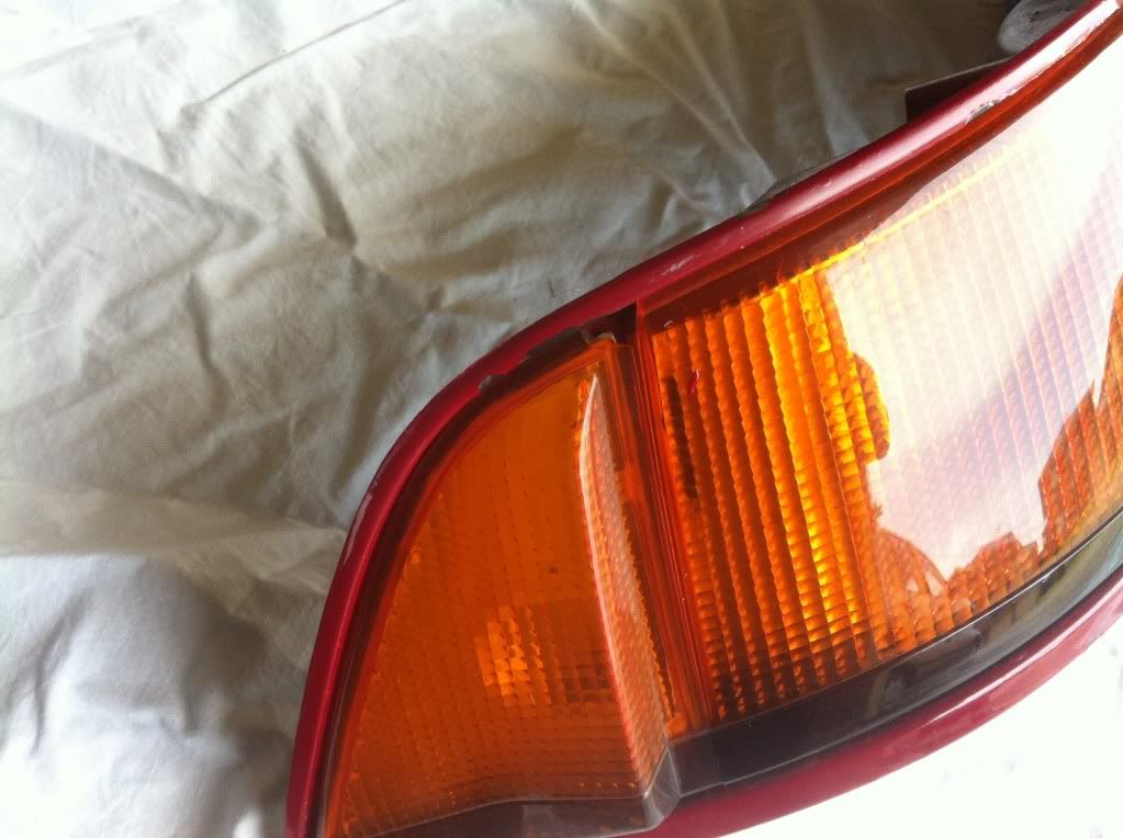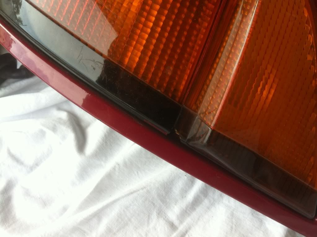 Tail lights, the red paint is pealing off, a remover could clean them up to the standard black underneath, also the little corner pieces have two minor chips in them.