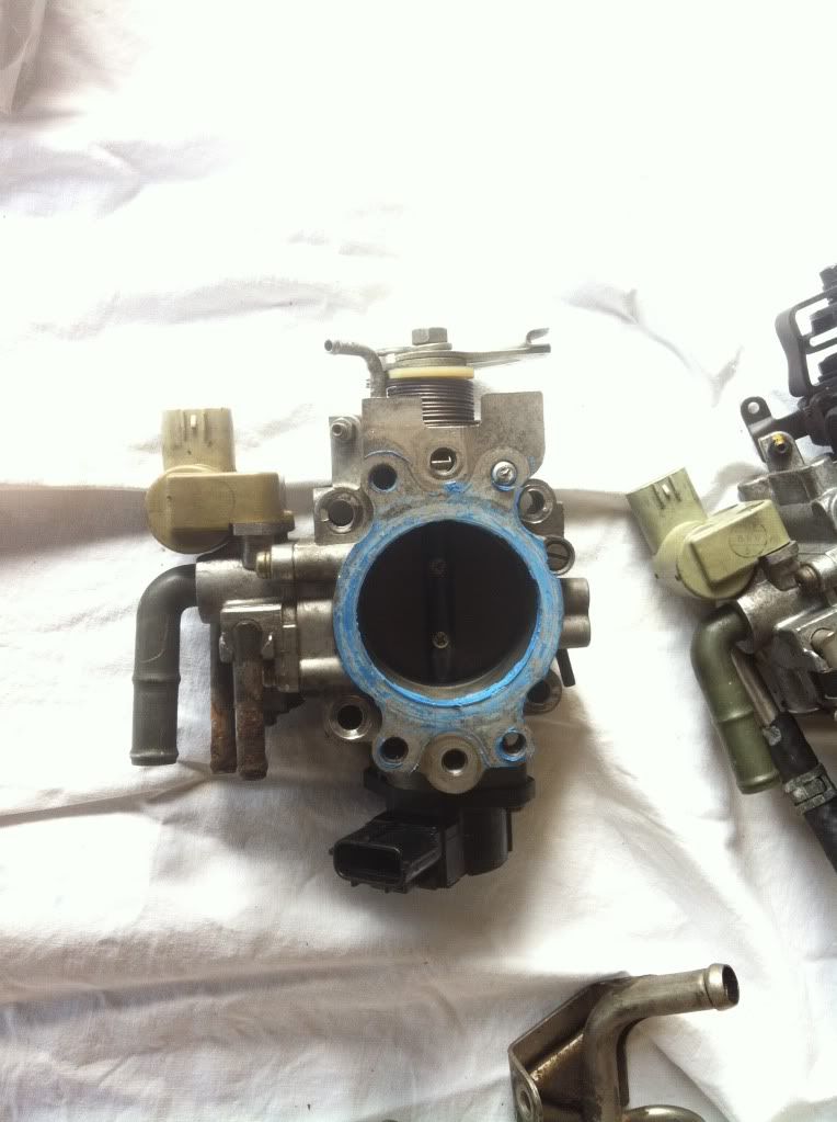Throttle bodies. this one has minor play in the throttle cable (turns 1-2 ml before the butterfly opens)