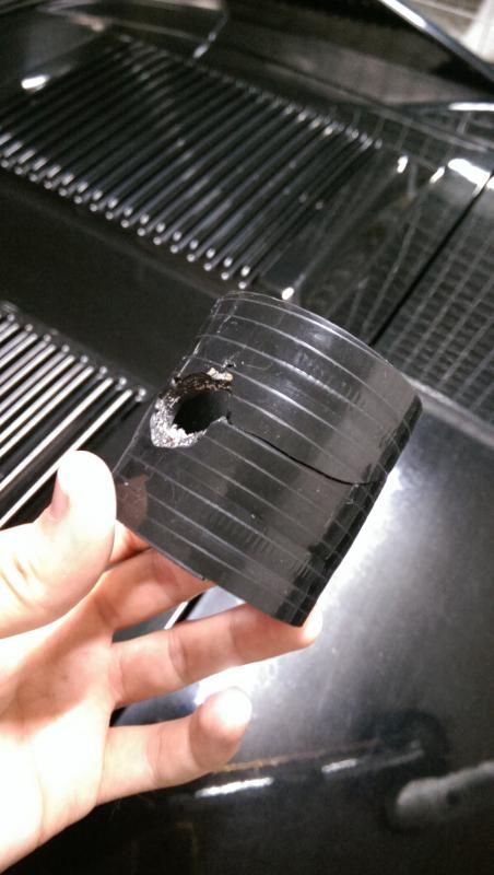 robk IMO the best thing about Wakefield is that there is hardly anything to hit if you go off the track! I showed this to many people at the event already (because I found it so amusing), but this is what happened to the silicon joiner from my turbo outlet while I was going down the main straight during one of the passenger sessions: