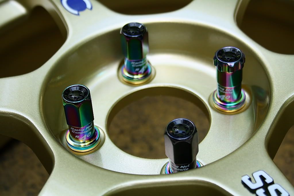 nope, no hand controller.. (?) Isn't necessary right? if its been setup for a 4age, it should be set-and-forget right? the lights are def worth the purchase. much better than the standard units that's for sure.. :) pics of what i did last weekend anyway; basically, the couple month old Rays Duralumin wheel nuts had allready oxidized and looked poo pooty. bit dissapointing, as they're fairly dear, but i sort of suspect a wheel-cleaner i use. pic...  ..either way, i wanted some nicer newer ones. :P bam. Project Kics Neo Chro R40 Revo's! without a doubt the stupidest and most expensive wheel nuts an idiot can buy!!!1! they have rotating seats ffs.. and end caps for... uhh... yyeah!  at the same time, ive been meaning to clean the back half of the wheels. these have done maybe 10,000km or so now, and a couple months of rain/hail/shine dailying. as far as keeping wheels overall clean goes, its best to keep onto it. this is what they allready looked like:  enter my favourite somewhat gentle citrus cleaner, followed by prepsol for the annoying tar spots.. and bam:  good as new! at the same-same time.. id never got around to putting all the decals on.  so on they went, and nuts sitting pretty for good measure...   and done! its all a bit of the same really!  and random;  done.
