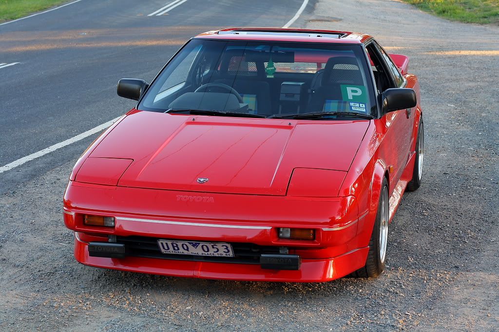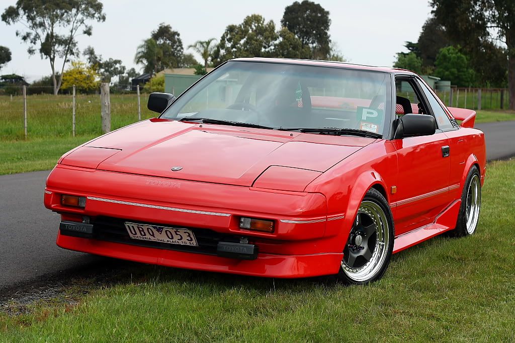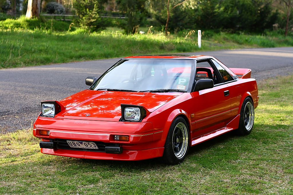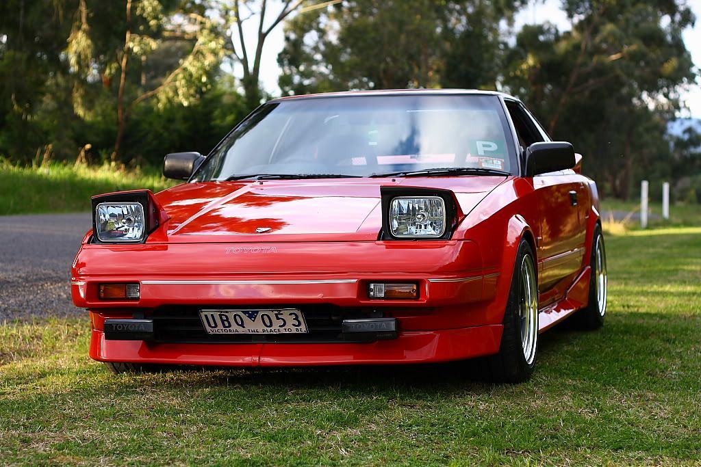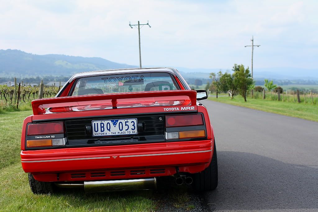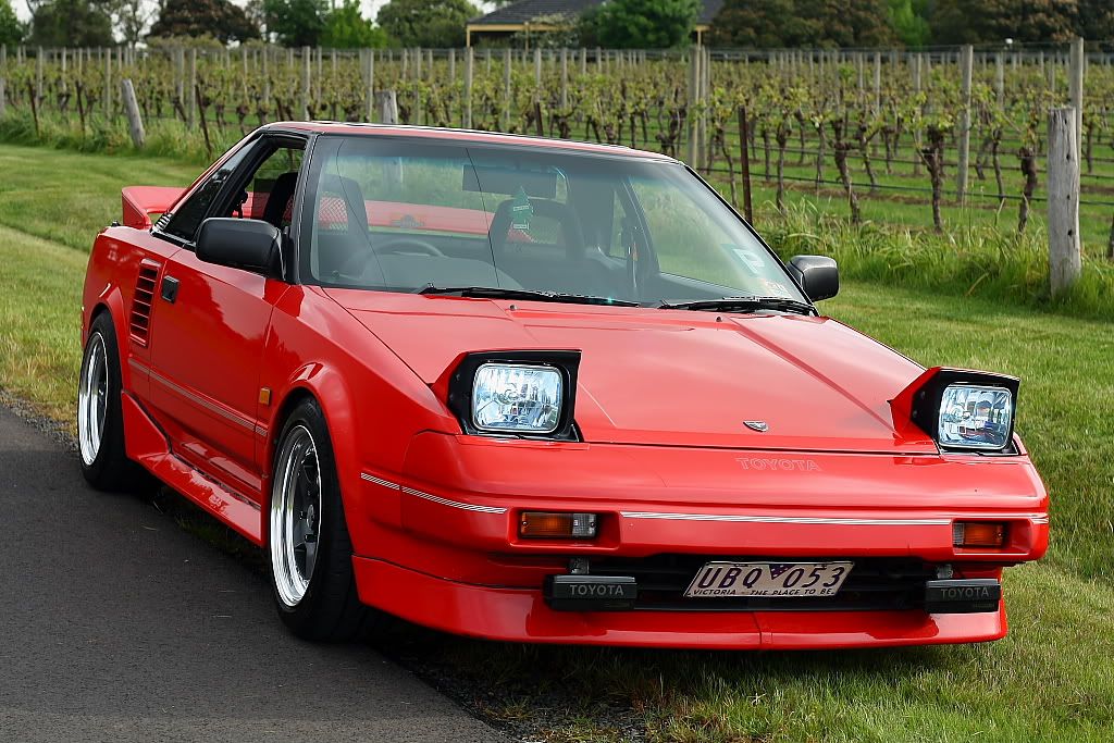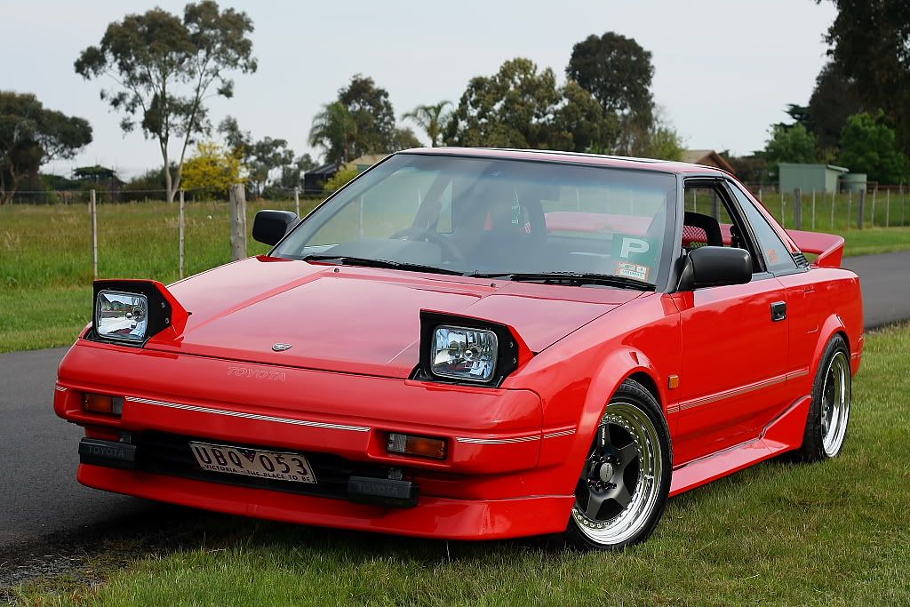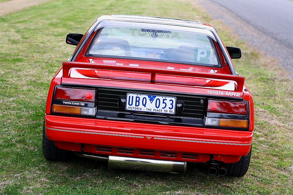 it has an adjustable aluminium wing, aluminium bonnet and (wide!) guards, brake ducts, tacked on rear flares, big front mount air and oil coolers.. with water spray.. etc etc.. so geekily rad. :P
