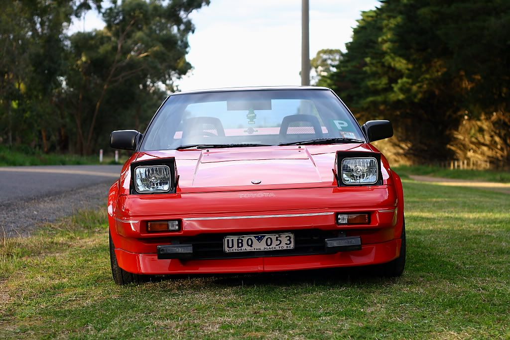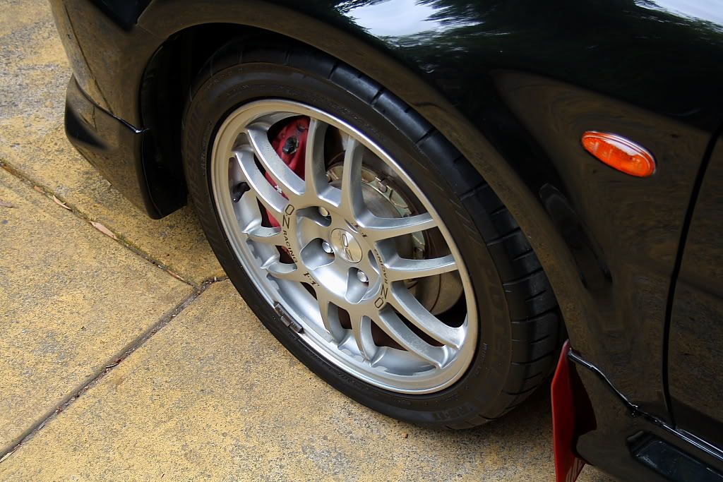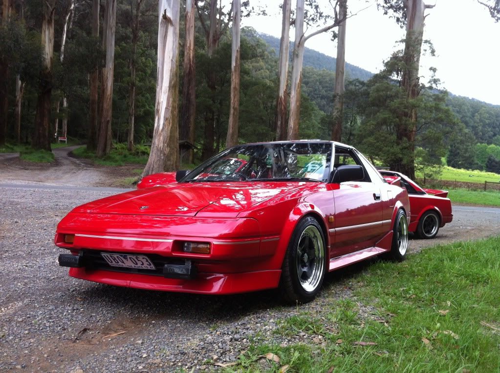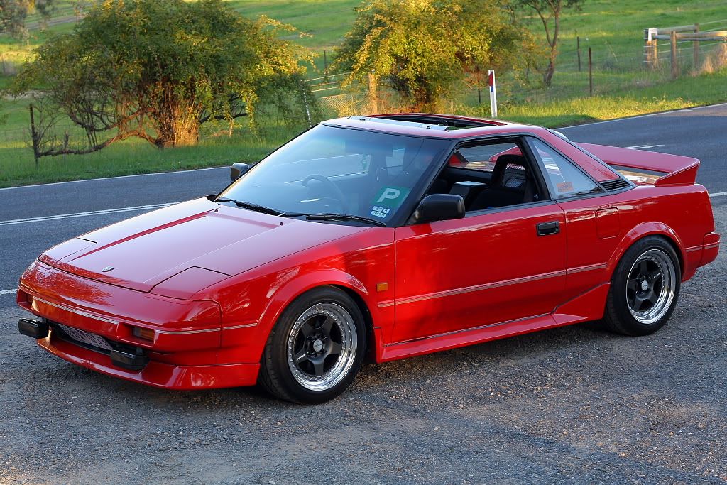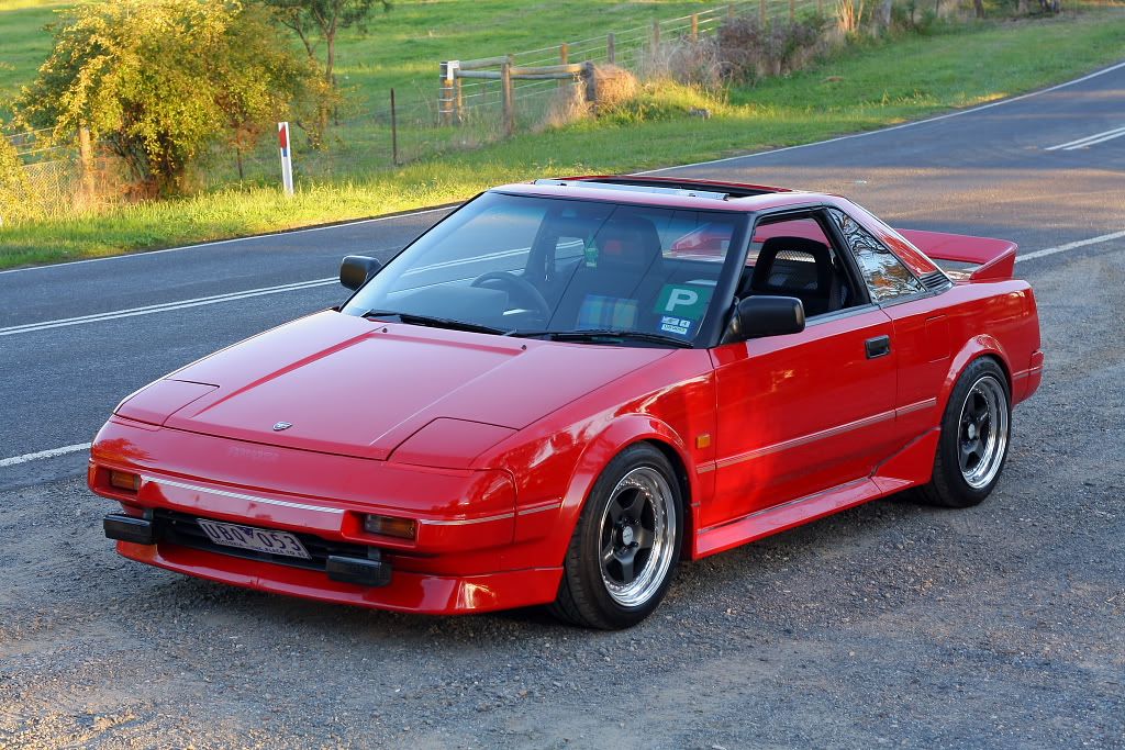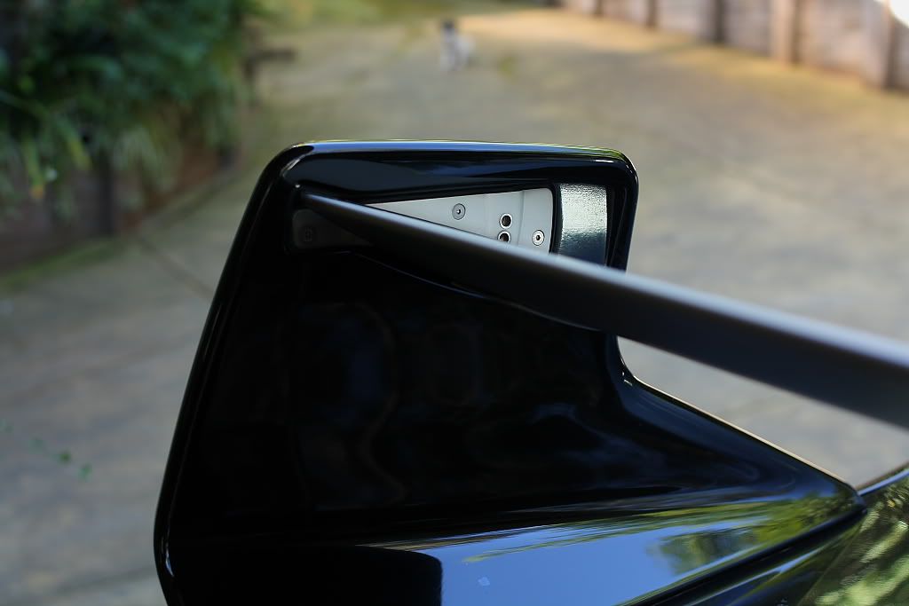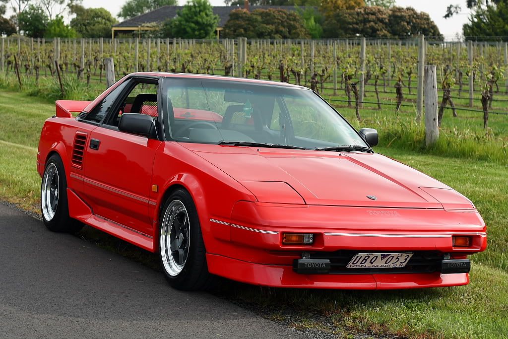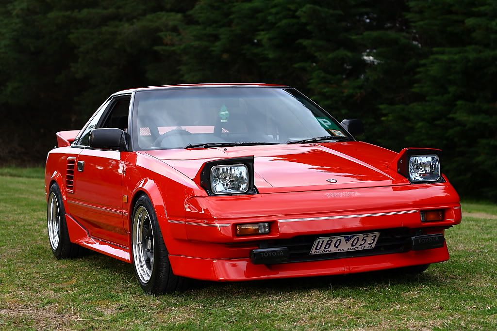 it has an adjustable aluminium wing, aluminium bonnet and (wide!) guards, brake ducts, tacked on rear flares, big front mount air and oil coolers.. with water spray.. etc etc.. so geekily rad. :P