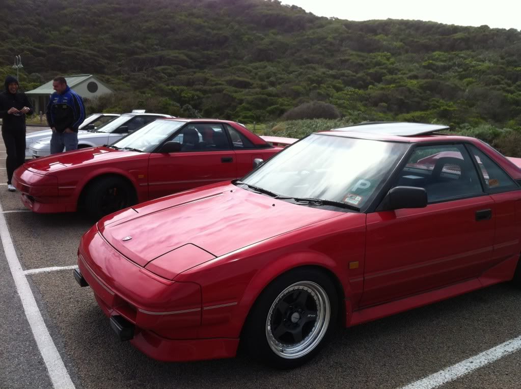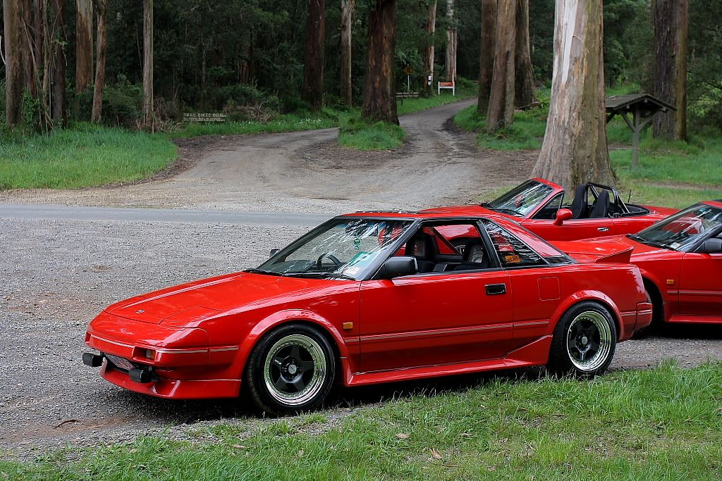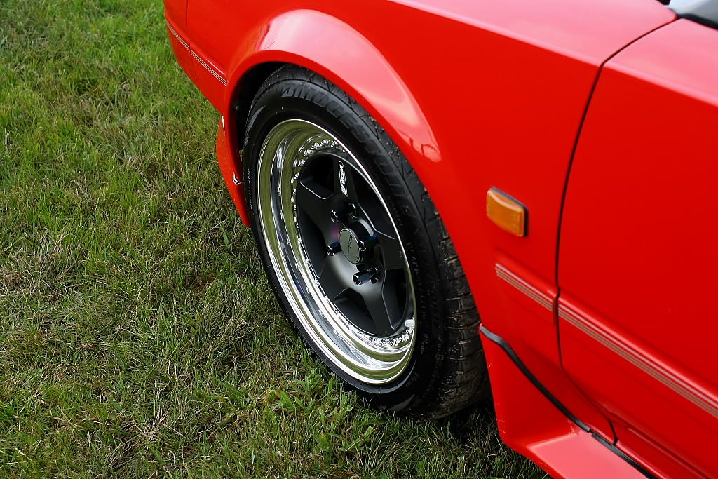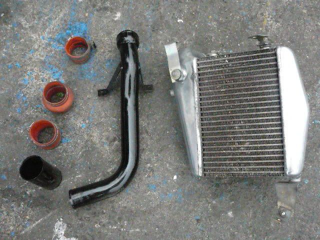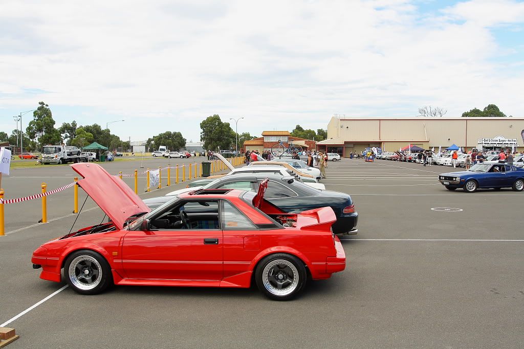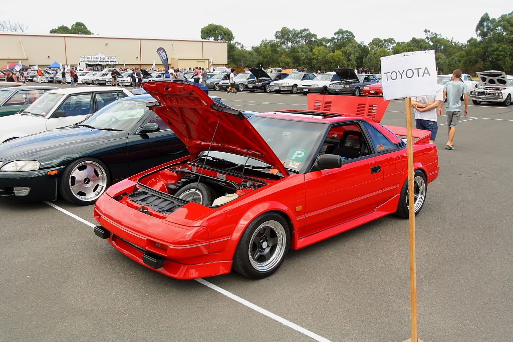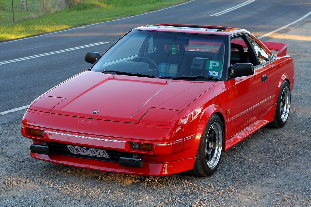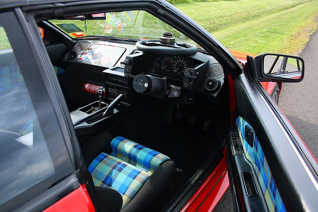 it has an adjustable aluminium wing, aluminium bonnet and (wide!) guards, brake ducts, tacked on rear flares, big front mount air and oil coolers.. with water spray.. etc etc.. so geekily rad. :P