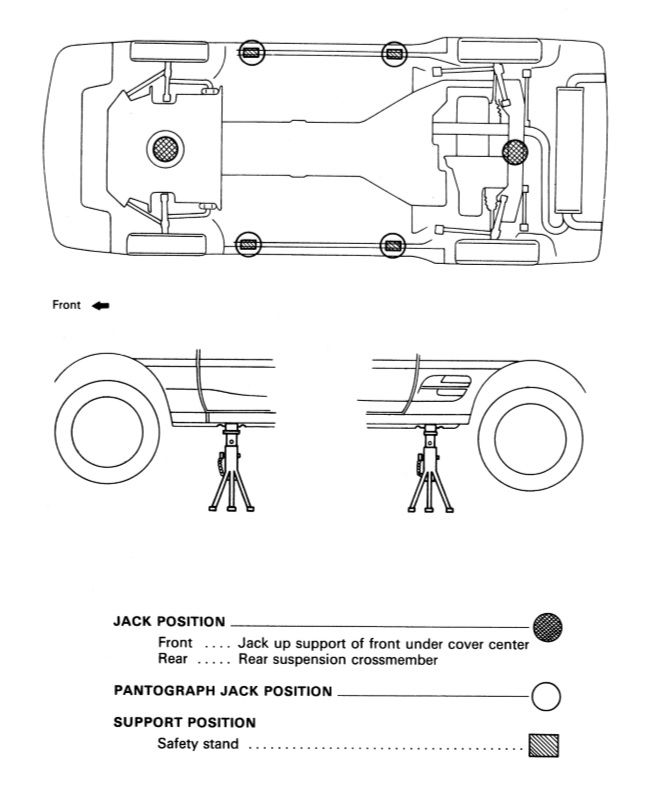 Here is the page of the repair manual which specifies the jacking points:
