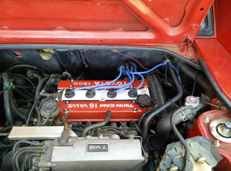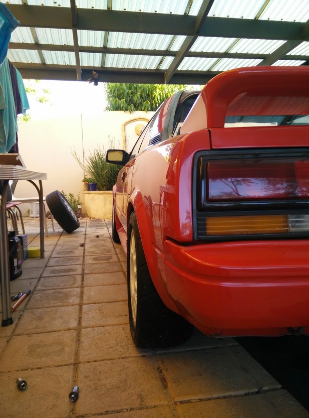 Since picking it up I've among a lot of other thing done up the suspension with new urethane bushings all round and coilovers, new wheel bearings in every corner with new rotors and pads. New starter and battery, rebuilt distributor, short shifter, timing belt after a failure on track, exhaust silencer and tons of other stuff.