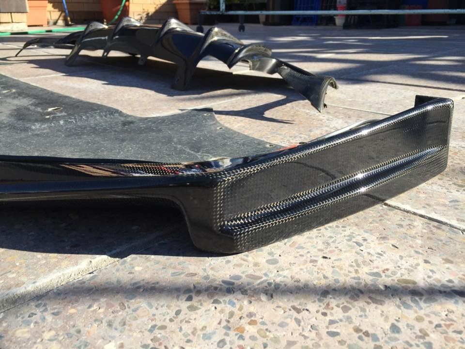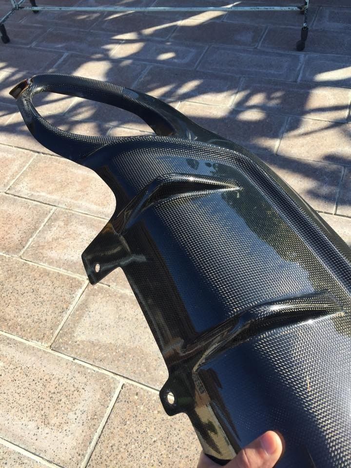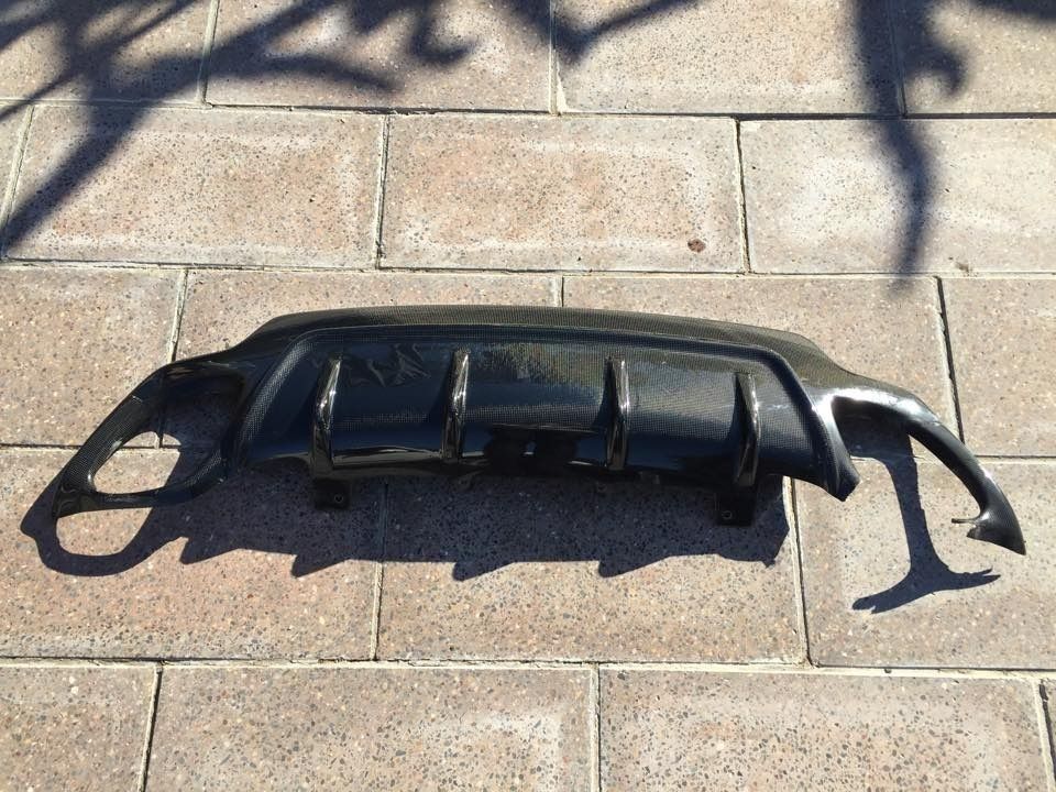 Bought some goodies which will be fitted during the week. The car previously had a Toms lip kit, which was removed before I bought it. I tracked down the buyer & bought the bits back. Toms front diffuser lip & rear diffuser. More carbon fibre. Being touched up by my panel beater right now as the rear had a bit of damage (I'll clean it up & even out the other side to match): Apparently the front lip/diffuser is a proven design/improvement. Not that I'd often make use of it to be honest.