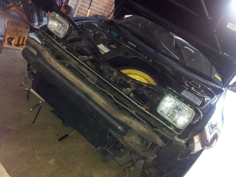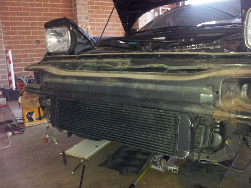 ^ looks like you will see it in the flesh next month Removed the Sard front on the weekend so I could change the dodgy mesh that was bodged during the W2A install. Thanks to Julian for the help. Whole exercise completed perfectly in record time. Took the opportunity to take a few quick phone pics & measurements to help out anyone planning a W2A setup. It's a custom ordered PWR core with Racesolutions fabricated end tanks. Still have AC. Required trimming of my front bar. Core - 60x15cm core End tanks - approx 45mm