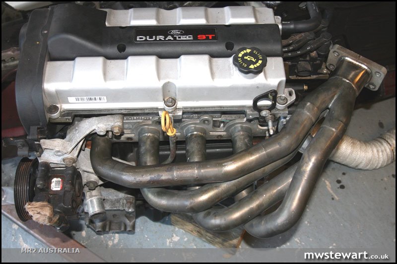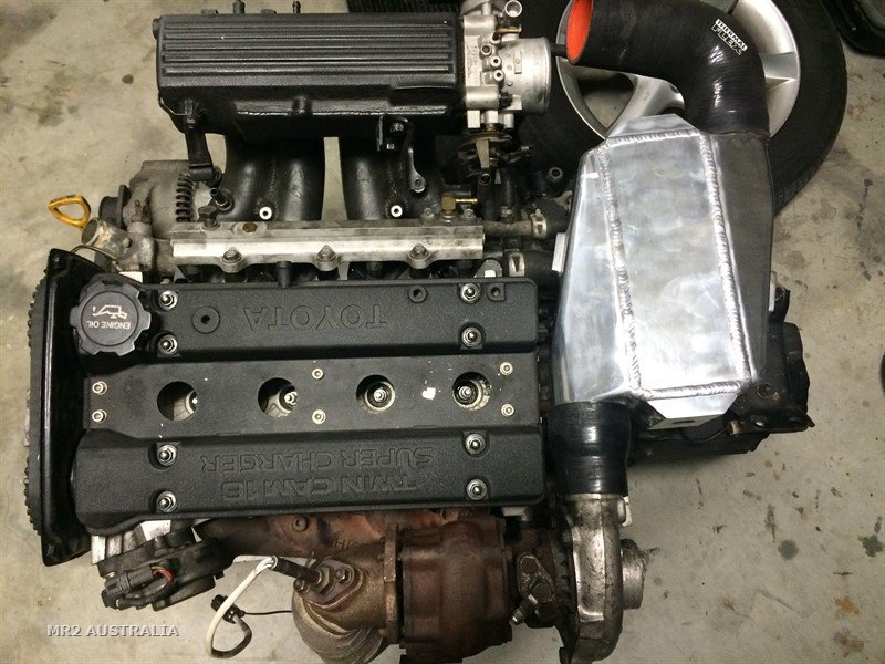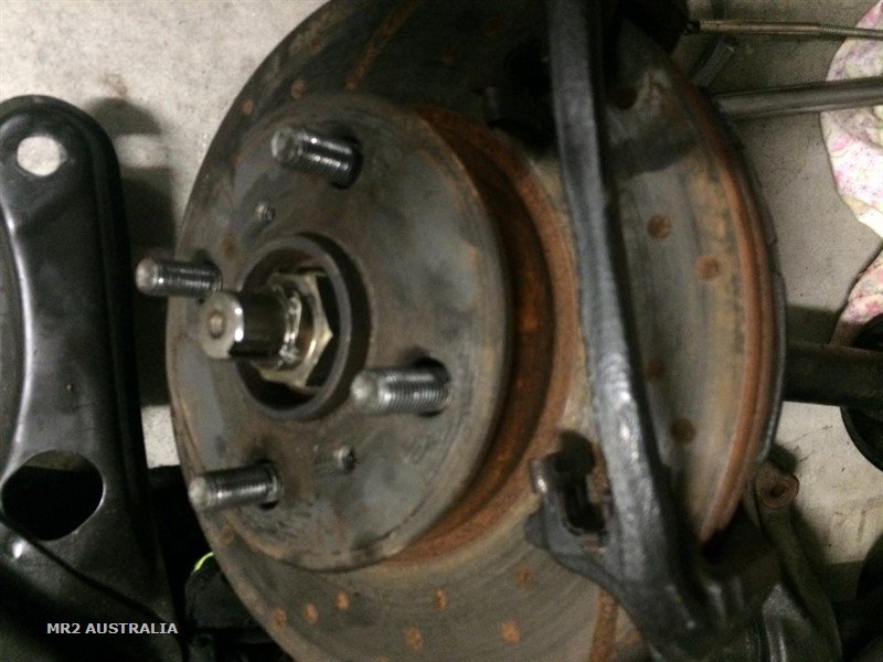 28 psi is serious stuff. Moving the turbo to a rear mount is interesting - the twin-charge set up will allow you to go to a free flowing high volume manifold like the WRC guys. You can avoid the lag this set would normally get with the supercharger instead of the weapons grade anti-lag the guys with unlimited budgets can use. You wont have room to fit the manifold below but that's the idea.  Had a big day in the garage removing all the good bits from the Corolla wreck. There was some fairly dodgy stuff lifting the front of the car high enough to clear the motor using only a trolley jack and pieces of wood but got it done with all limbs intact .JPG) I had a some trouble with the driveshafts because there is an extra bit of unthreaded material at the end of the shaft that means a standard 32mm socket can't reach the nut (see pic). Tried to buy a deep 32mm at Autobarn/Repco/Mitre 10 but no go. I ended taking off the whole upright however I still need to get the shaft out of the hub so Ican get the car back on it's wheels.  Anyway the engine is out and couldn't resist doing a quick mock up with the HKS set up. .JPG)  There is a little messing around with plumbing but I am really happy with how neat it all fits together. Mounts for the W2A will also be pretty straight forward. I still need to work out a solution for the W2A heat exchanger though. Pete