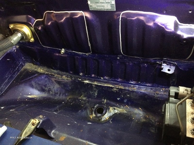 Starting a thread for this 1999 bathurst as its had a long story behind it.. nevertheless, parted out & now one of my track cars. This is now one of the sw20's I'm bringing over to WP challenge in Jan 2017 ;-) Below is the car at WP challenge Jan 2017.. Parked next to my other black track car, both ran beautiful for the entire event! Back home after the event... road trip, started doing some improvements, simular to what I have done to my above black Sw20. Just copied my other sw20, marking out frunk radiator wall to reduce some weight & give better air flow. .JPG) Stripped most of the interior out Fitted some seats, harness & extinguisher. Fitted a sports wheel & swapped out the original air filter with a K&N one. More to come!