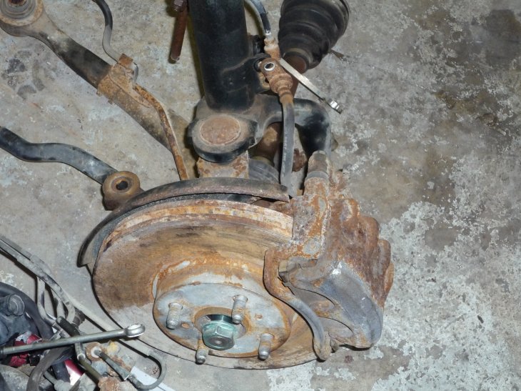 I'm fitting 87+ disks too - with the right pads, they should be fine. The half-cut came with 275x25 50 disks, if I recall, and twin-spot calipers (st165?), but they're a bit extreme for me : you'd need to upgrade the rear to match, and then the master cylinder. The disks and calipers fit in a 15" rim in the donor trueno, and the disks will fit an aw11, but I don't know how the calipers will go : they may need custom brackets. Anyway, that's not my problem.
