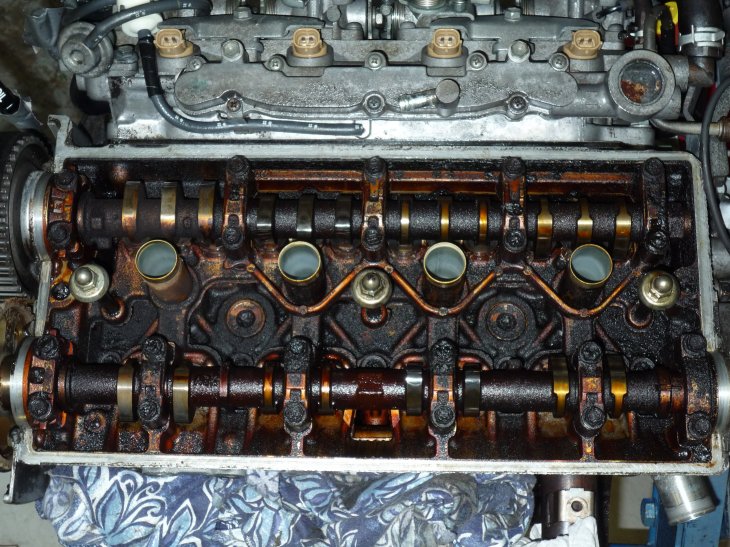 And the not-so good news; under the cam covers, there's this :    Looks just like Road and Track's photos! http://www.roadandtrack.net.au/OldWebSite/Documents/Toyota%20engine%20failures.pdf The black stuff is crusty, and comes off in small chunks when you scrape it. It looks like the head has to come off for a cleanup. And while the head is off, may as well strip it and do it properly... More time and $$$; at least I don't have a deadline. Anyway, I'm still waiting for a loom and a c52 gearbox, so the project is stalled for a week or two. ps Flywheel needs machining & clutch needs replacing : no real surprise there. Next week: the head comes off, and I get to see all those valves I paid for!