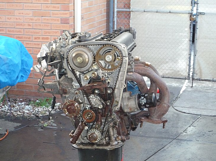 No pics today. Cleaned tons of gunk out of the throttle bodies - they were black as! The block is stripped. The head is at the doctor for a freshen-up (not cheap!) The loom is being built as I type Ordered a new timing belt pulley and idler from melb. city toyota : they can source JDM parts for the blacktop at a reasonable price, and say 4 weeks delivery at worst. I got the part numbers from http://www.toyodiy.com/parts/ , and they all matched toyota's computer system in melb. Next : finish cleaning block and paint it, start to re-assemble the engine. Total cost so far : rising.