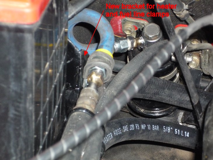 Ok, quick update. Engine is in. Fuel system plumbed up - had to extend the aw fuel line about 6" Heater hoses done. One radiator hose done. New battery carrier went in today. Brackets to hold hoses etc. fitted. All electrics connected. Old alarm removed - pig of a job. Engine cranks, and we have oil pressure.