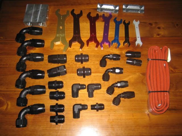 I havent done much to it lately but have a few more parts. AEM coils. Cut up the old leads to get the dust seal to use on the coils   Autronic CDI  TRD strut braces. Front is used rear is brand new    And finaly got the bits from AN plumbing. Pro-lite hose and black ano tuff hose ends.   I still have to get a lot more hose and ends but what I have is enuf so ill be able to start the engine. Because of the cost I decided to do it in a couple of lots, and now I have this stuff ill be able to work out exactley what other hose ends I need. Also waiting for a crank angle sensor and wheel to arraive. Will also be totaly re-doing the engine loom so its a bit more hidden than what it was.
