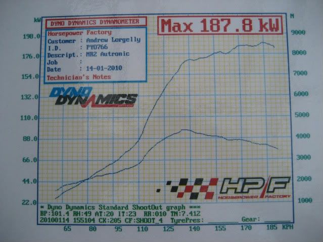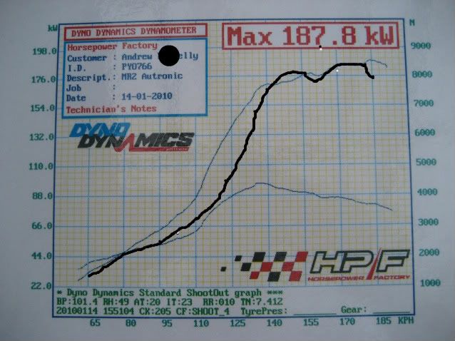 Picked the car up earlier today. Only made 187.8kw @18psi (different dyno) Havent had a chance to test it yet but up to 100kph dosent feel any different.