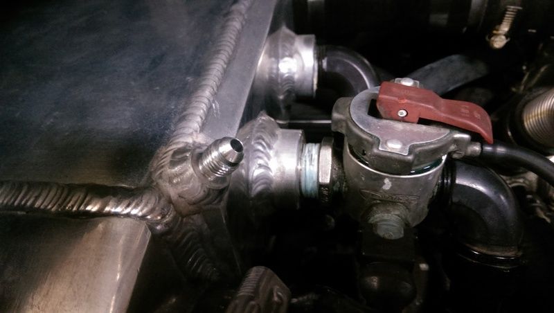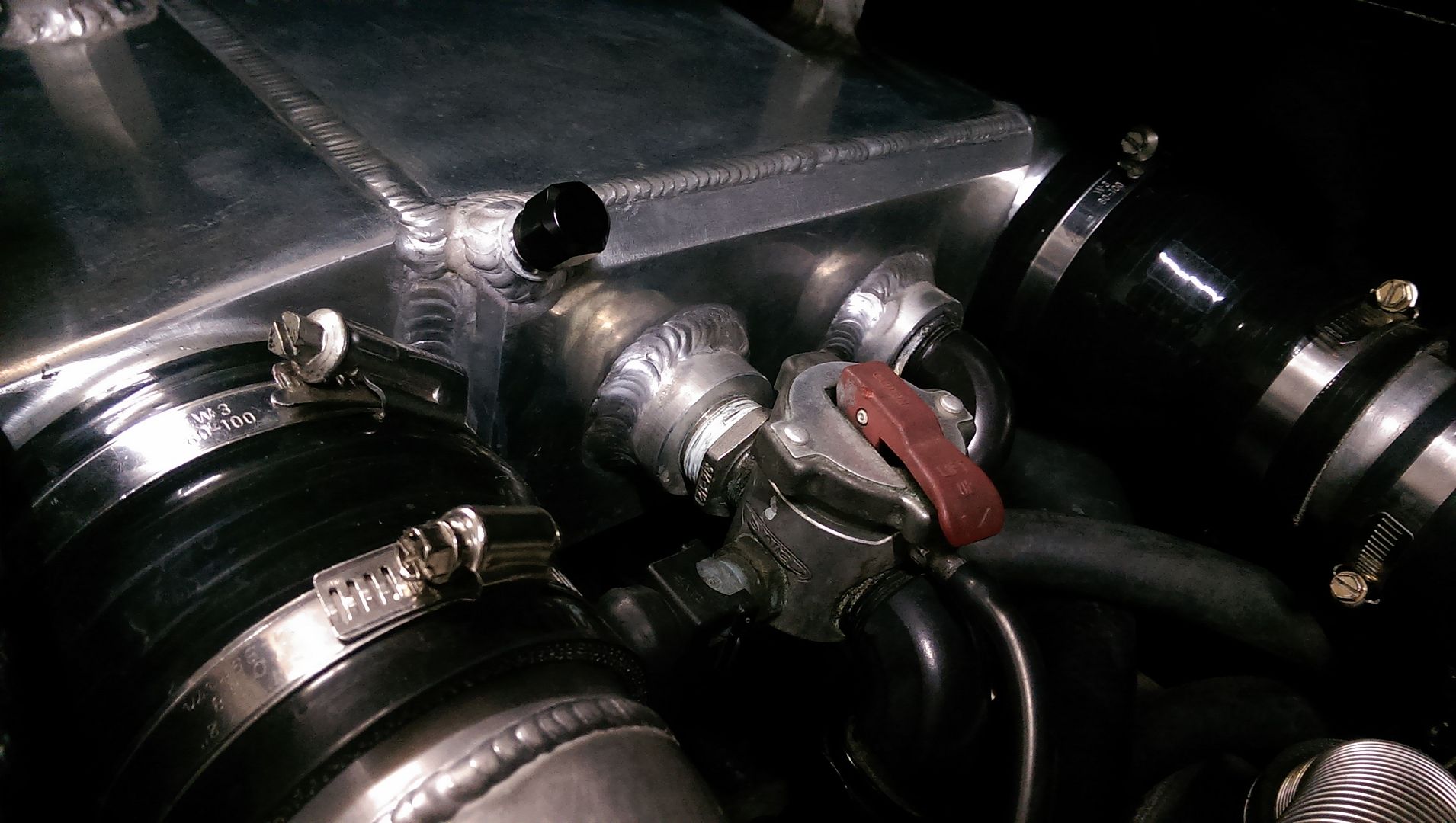 I took my A2W intercooler back to my welding guy last week, for yet another modification to stop my intercooler piping from blowing apart after extended periods at 30psi of boost. This will be the end of it, I swear haha.  While the intercooler was out of the car, I also got him to weld on a bigger filling/bleeding point, so I no longer need to use a syringe to top up the intercooler with coolant! Before: After: