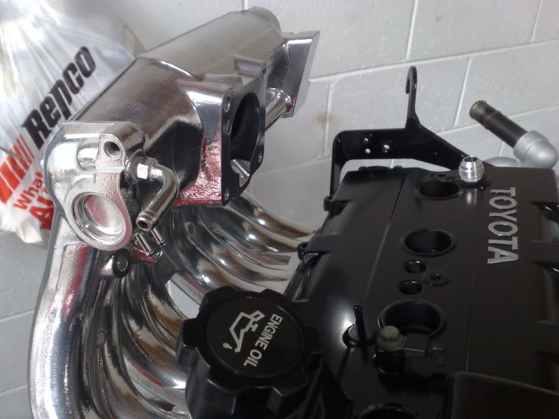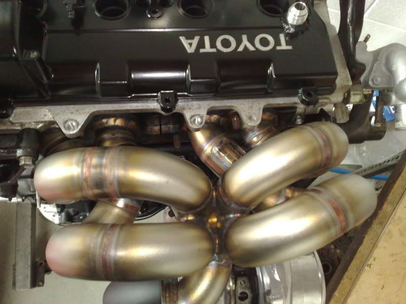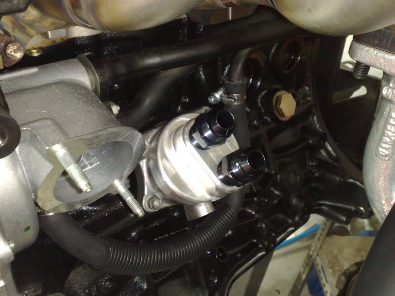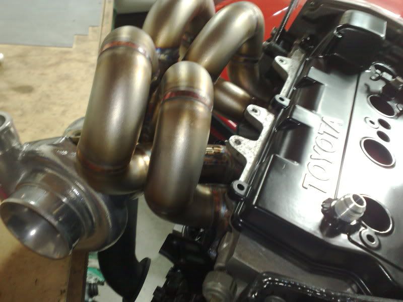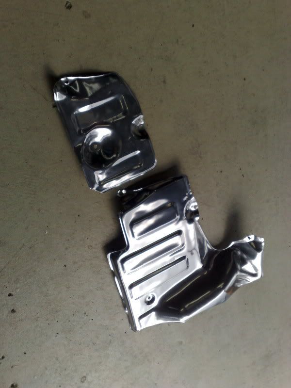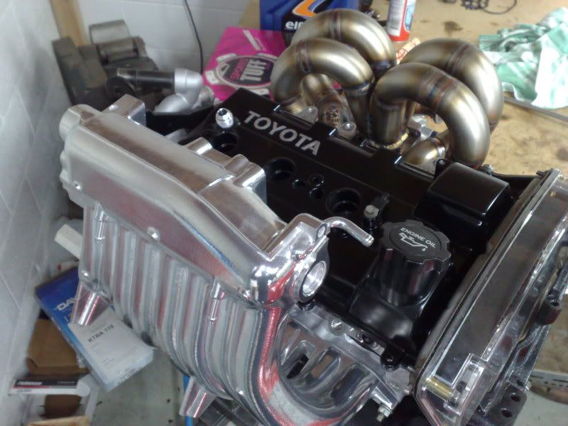 I have been waiting for the chance to take these particular progress photos for weeks, and here they are finally! Note that the parts are just temporarily mounted for the photos. Full Race exhaust manifold (the correct one this time) and dump pipe:     Ceramic-coated intake manifold/plenum (I'm so happy with how it turned out!):     Ceramic-coated heat shields:  And a minor thing, fittings for a remote oil filter:  Enjoy!