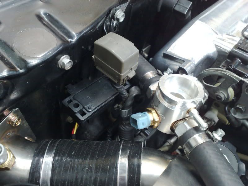 MSD 3 bar MAP sensor in place of stock MAP sensor, and filler neck for W2A IC system (notice the water temperature sensor which was custom fitted):