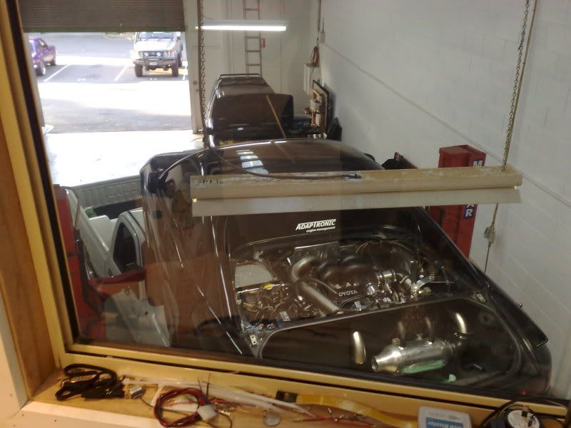 This one is just to show what I mean when I say that I get to watch the progress very closely every day while I'm at work (that's my office window on the second level of the building, with my car on the hoist