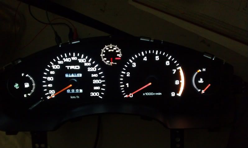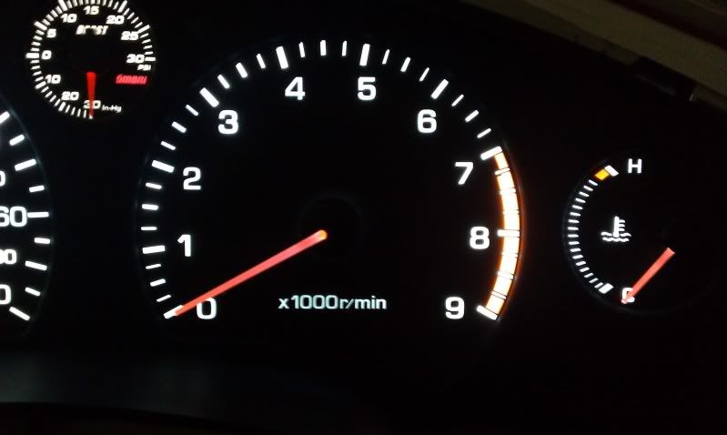 Thanks for that Mark! It looks like you have done a great job, with no hotspots too. When my white LEDs arrived on friday and I installed them and tried it, I thought it looked alright before removing the purple tinge, but seeing your pic above it looks heaps better in pure white  BTW, what's with the tacho needle?