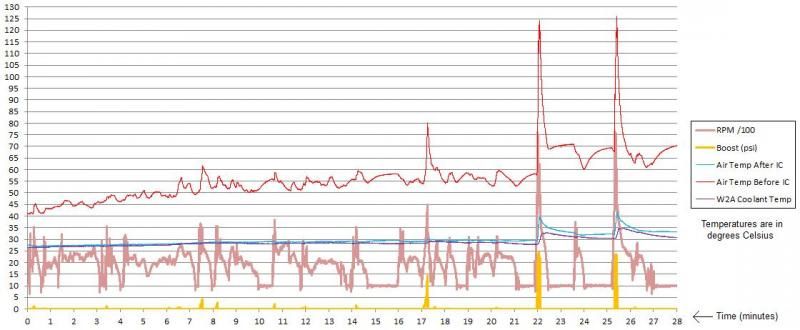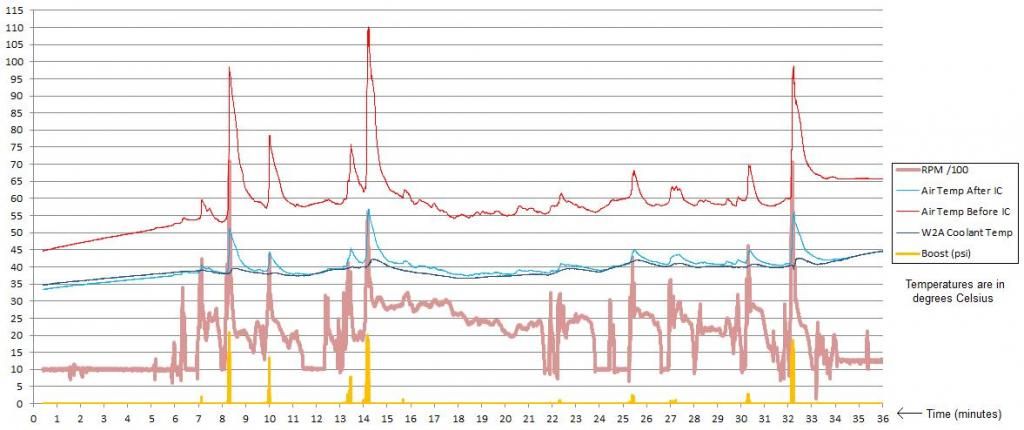 The way that both of these tests were done, it obviously doesn't indicate what would happen at the track or driving through twisties in a spirited fashion for minutes at a time, but it certainly shows that the system is perfect for street driving where there is normally plenty of time for the A2W coolant to cool down between high-boost events.