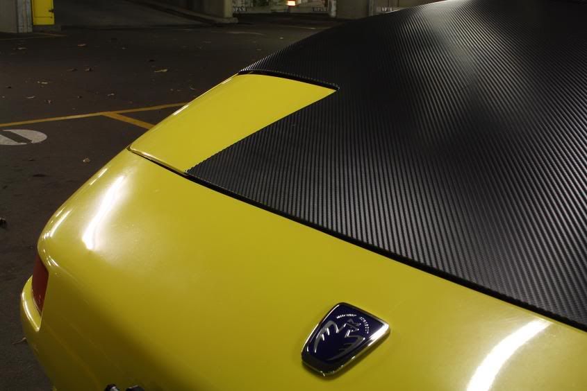 surok - i've had the rev5 spoiler and snorkel sitting in the garage for ages but just haven't been bothered to send the car to panel beaters and yes, i ripped the carbon fibre sticker off the bonnet and the rear centre panel as i was getting the side mouldings colour coded from black to yellow i thought it was a good idea to leave the whole car in one colour!