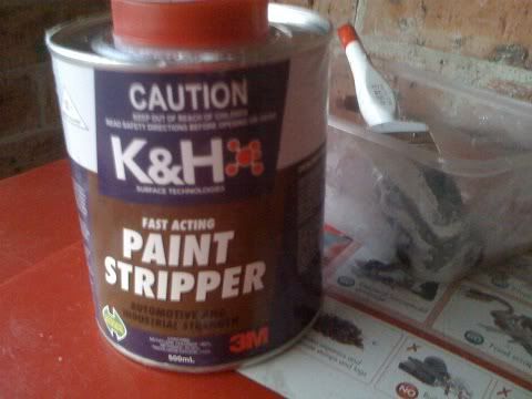 next step was to paint strip the rims to get the poo-ey laquer clear coat off.