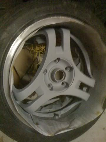i masked down the centre cap inner part, the valve stems and the inside of the wheel also.