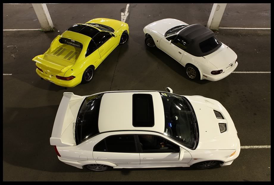 thanks guys, got my type-OS CUSCO front strut bar from chris the other day, going to install it soon in my spare time. anyone have a rear strut bar for sale? if so give me a buzz. also waiting for dylan's shipment on my FGK LEGALIS R EXHAUST. i know it's quiet.. which is what i'm looking for... anyone have experience with this exhaust on their NA before? i want to hear some feedbacks... here's a few snaps with a few mates; "THE LAKERS THEME"