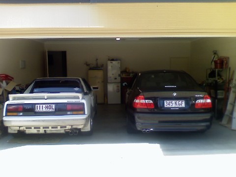 One in the garage, one on the concrete slab...  Shared garage means only one of them can live in comfort... It's the one without the motor that get's all the comfort to >.>
