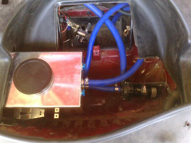 Mounting it in the front is definitely better though. Ideally the heat exchanger should have as much surface area as possible with maximum airflow, even if the intercoooler is a small one.