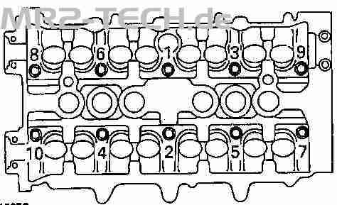 Die zehn Schrauben aufsetzen und in der im Bild gezeigten Reihenfolge in mehreren Durchgängen gleichmäßig festziehen.