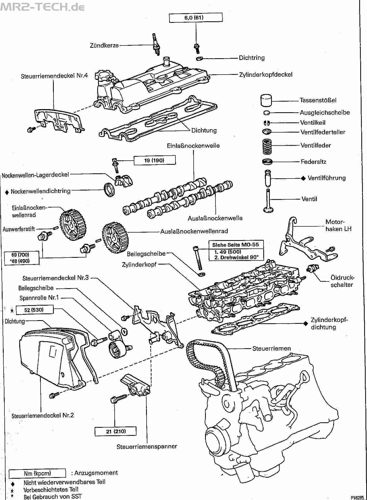 Anzugsmoment: 67 NmAnzugsmoment für ARP: 75 Nm- Sicherstellen, dass sich die Kurbelwelle leicht drehen lässt.