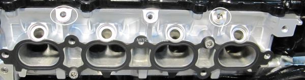 Obere Anlaufscheibenhälften ("washer") einsetzenDie oberen Anlaufscheibenhälften in Lagerblock Nr. 3 in den Zylinderblock so einsetzen, dass die Ölnuten nach außen zeigen.