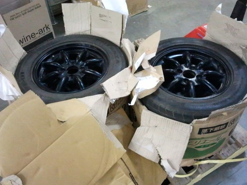 Nothing crazy, 14x6 with a decent positive offset, so they'll probably sit the same (or maybe a few mm further out) than the teardrops. Two are in great nick, decent paint and no kerbing, the others have quite a lot of paint flaking off and tyres (re-01's) are good on two of them and at the wear indicators on the rears. I'll be getting them powdercoated at some point, either black or charcoal/dark grey - It should look good with the white car. I'll probably replace the tyres all together since I don't know how old they are, and they don't look too fresh. Plus, I'm still waiting for wheel lugs to arrive to fit them. I waited 2 1/2 months for them to arrive from Japan, so this last wait is torture...I'll post pics once I get them on.