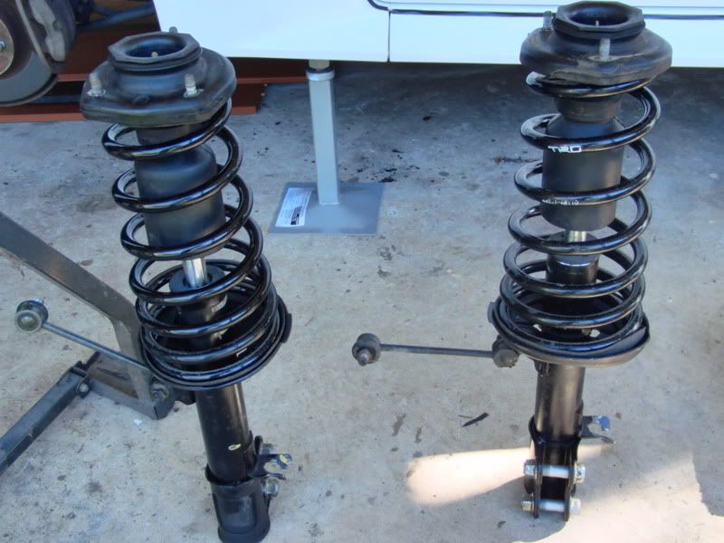 I decided to do it all myself - something I've never attempted before (haven't even done basic servicing, really) but found a write up and downloaded the BGB - took more or less a whole weekend (including about 4 trips to the hardware store for WD40...then releasing agent...then breaker bar... then monkey wrench... Gland nuts and 19mm strut bolts were *very* frustrating - and judging by the colour of the shock fluid, they all badly needed a change, anyway :S