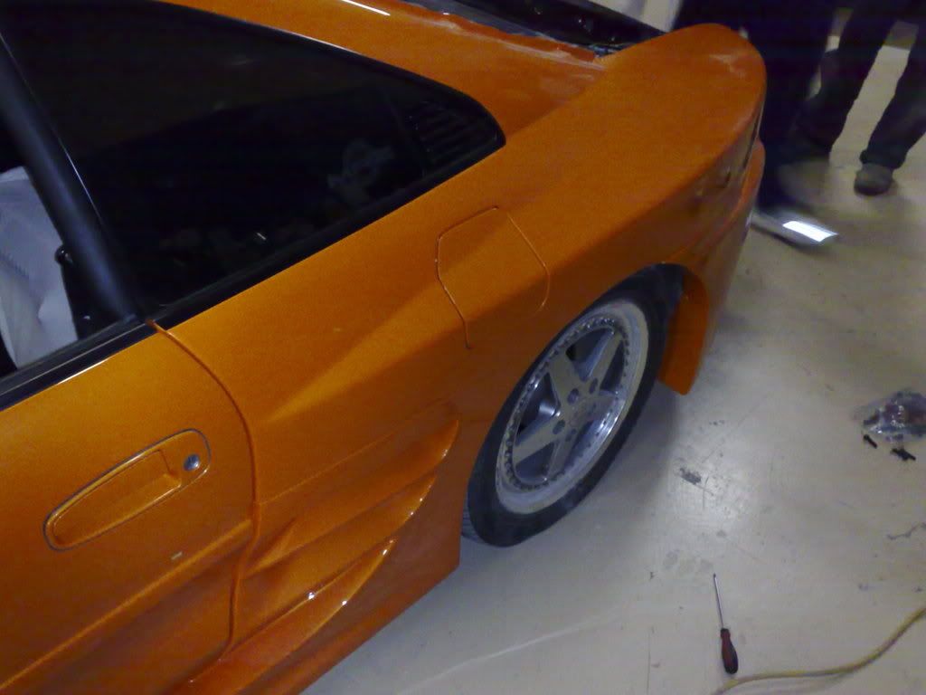 So yeah had all the body kit taken off, fixed up, put back on, gaps fixed up, fuel cap door put on, letters on the side mirrors shaved off, antenna hole filled in, tow hook put on front (bolt through intrusion beam behind front number plate) and yeah all my dints, holes, cracks fixed up