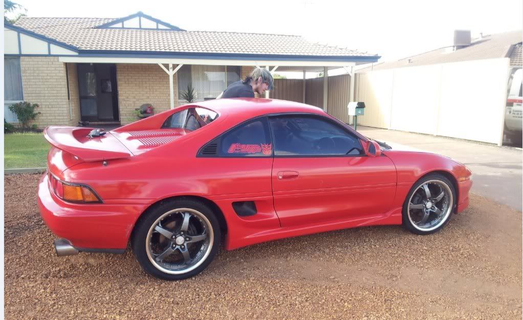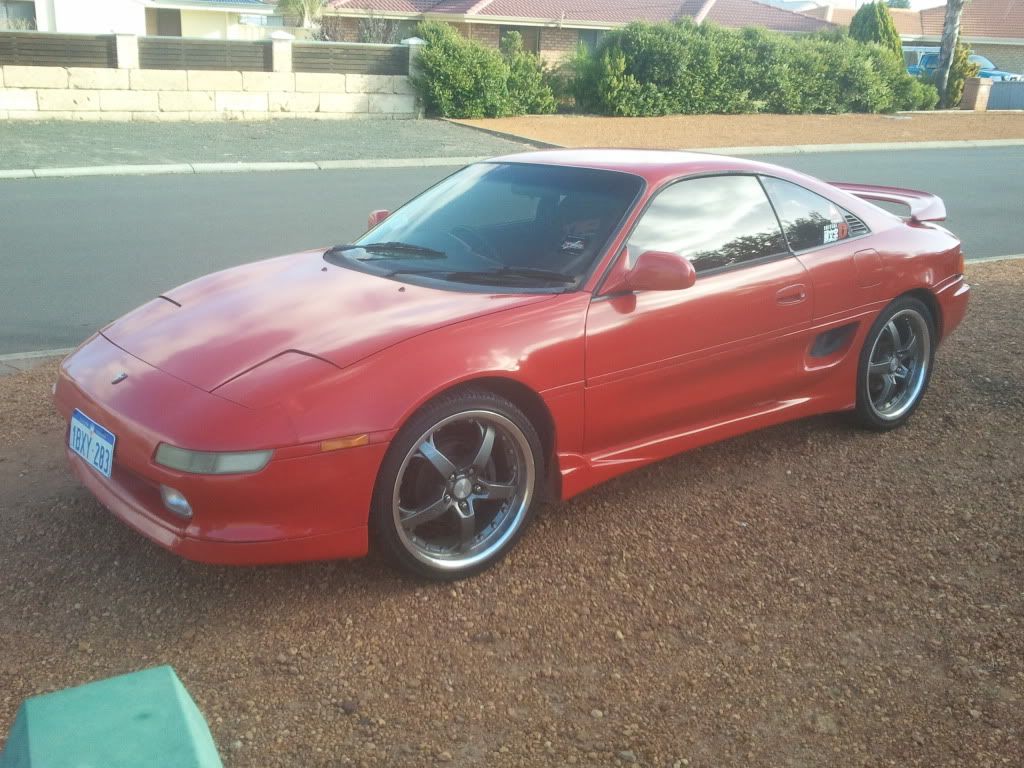Hai all! Just sold my Onevia and brought this sexy hardtop Mr2. Ended up getting it for 7k. Also got paperwork going back to when it was imported in 2004. Car dosent have many mods at the moment, and sadly isint as fast as my old onevia, but theres nothing a little time and money cant fix :P On that note. What mods should i do? i have around 7k to dump into this car. what would you guys do? alas my knowledge on mr2's is not as good as the sils :P 153,000km on chassis, 125000km on engine -5 speed manual - Heavy duty clutch - newer motor ( 95 model 3s-gte) - Rebuilt turbo ct26 - Blitz blow off valve - Trust 3 inch exhaust system - pod - 18 inch ANZ rims - leather seats - Sports suspension