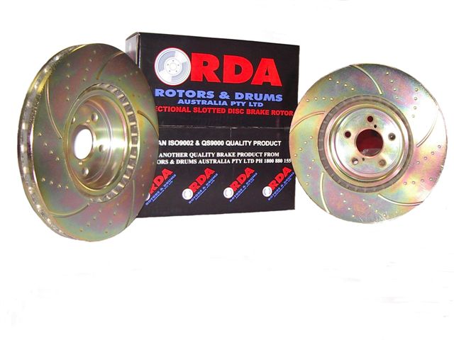 Have been considering buying a set of new front rotors as I'm getting some shuddering through the steering wheel under braking. Anyway checked Ebay today and spotted a set of RDA slotted/dimpled Zinc coated rotors on clearance for $99. Snapped them up quick smart :) Normally these go for $350 or something. I'm expecting these gold ones to not suffer from the rusting issues of the regular RDA. Similar to these ones but with four studs etc