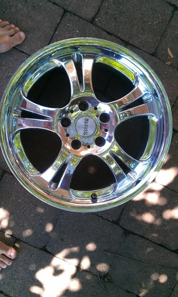 17x7 +40 offset I thinkGood for doing "Spastic Dip" if you dont like the chrome.
