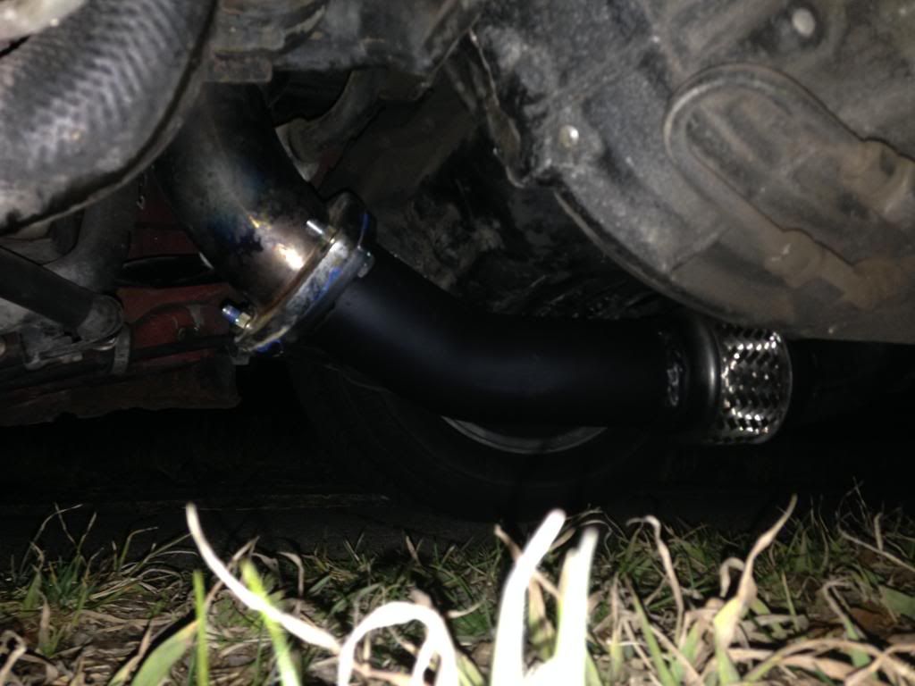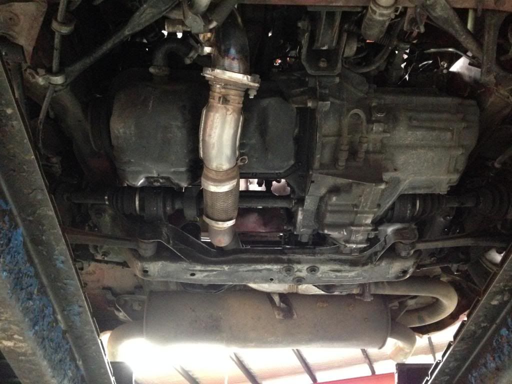 And a 100 cell metal cat With a mercury straight through muffler Cost me 600$ All tig welds and looks awsome, And sounds nice and tuff when you stomp on it But nice and quiet at quarter throttle its great :) And is very hi flowing compared to the stock one