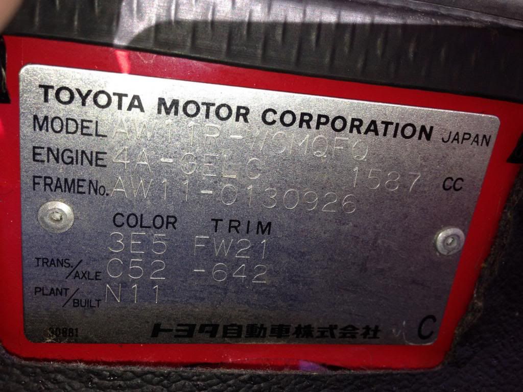 Re: MR2 1987 - AW11 - 4AGE - Clean!